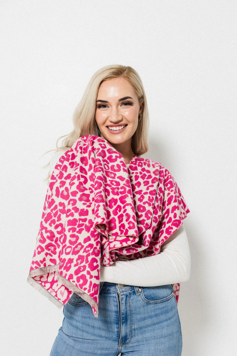 Whether it's a crisp spring morning, a cool summer evening, or layering up in autumn and winter, the Leopard print scarf is a stylish and versatile addition to your wardrobe. With its generous size, it drapes beautifully over your shoulders, adding both warmth and a statement touch. Light enough for the milder months yet cozy enough for colder days, this wrap transitions effortlessly through the seasons. The striking design adds a pop of contrast to any outfit, making it the perfect accessory for year-round chic.