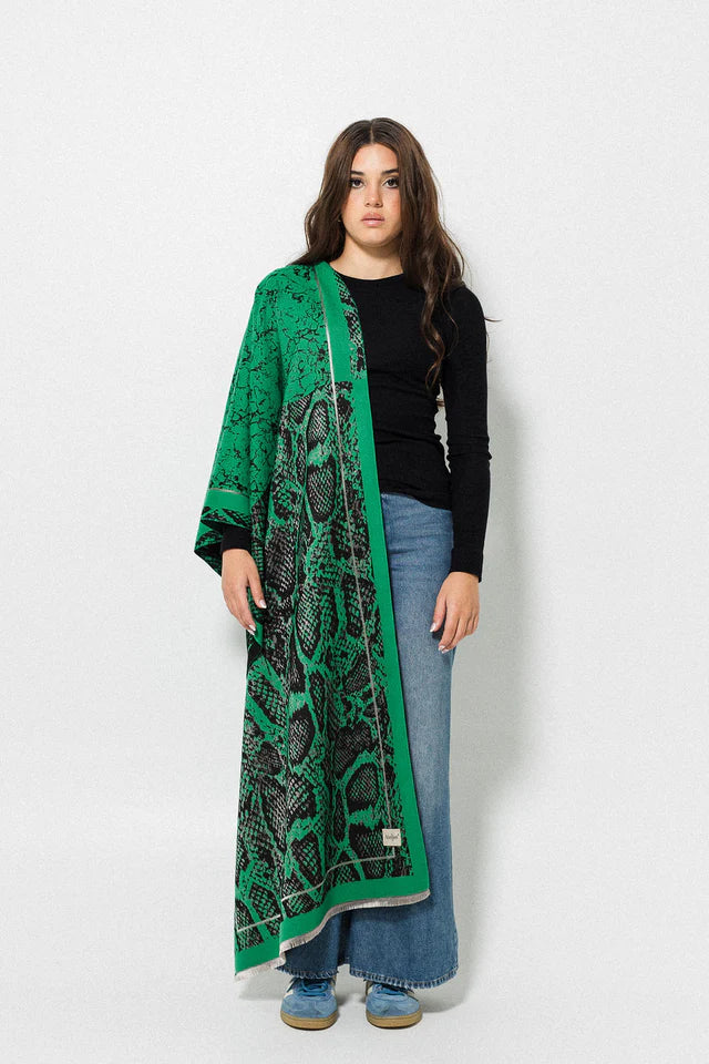Whether it's a crisp spring morning, a cool summer evening, or layering up in autumn and winter, the Snake print scarf is a stylish and versatile addition to your wardrobe. With its generous size, it drapes beautifully over your shoulders, adding both warmth and a statement touch. Light enough for the milder months yet cozy enough for colder days, this wrap transitions effortlessly through the seasons. The striking design adds a pop of contrast to any outfit, making it the perfect accessory for year-round chic.