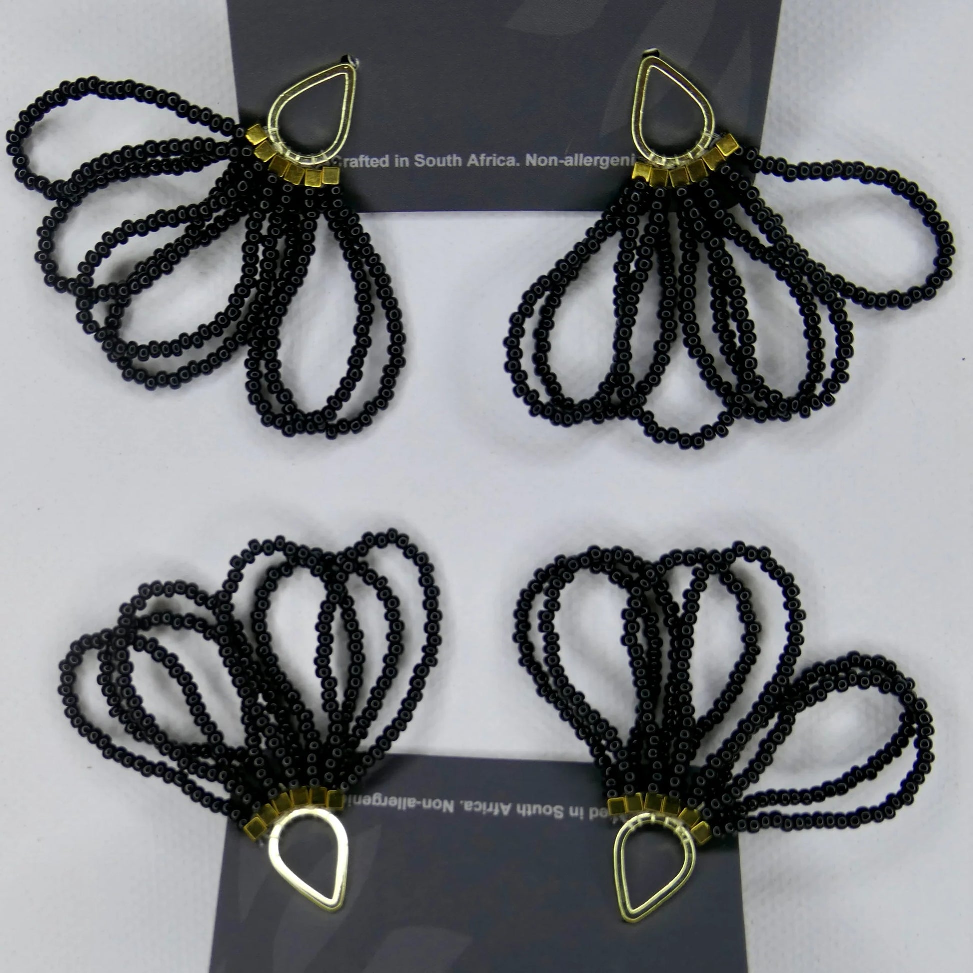 Draped Teardrop Earrings - Black (Gold-Plated)