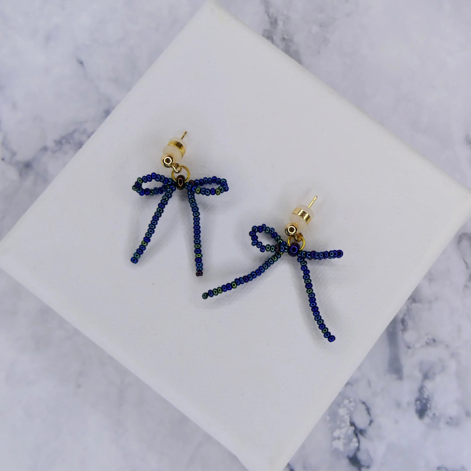 Mini Noya Bow Earrings - Mermaid Blue (Gold-Plated)