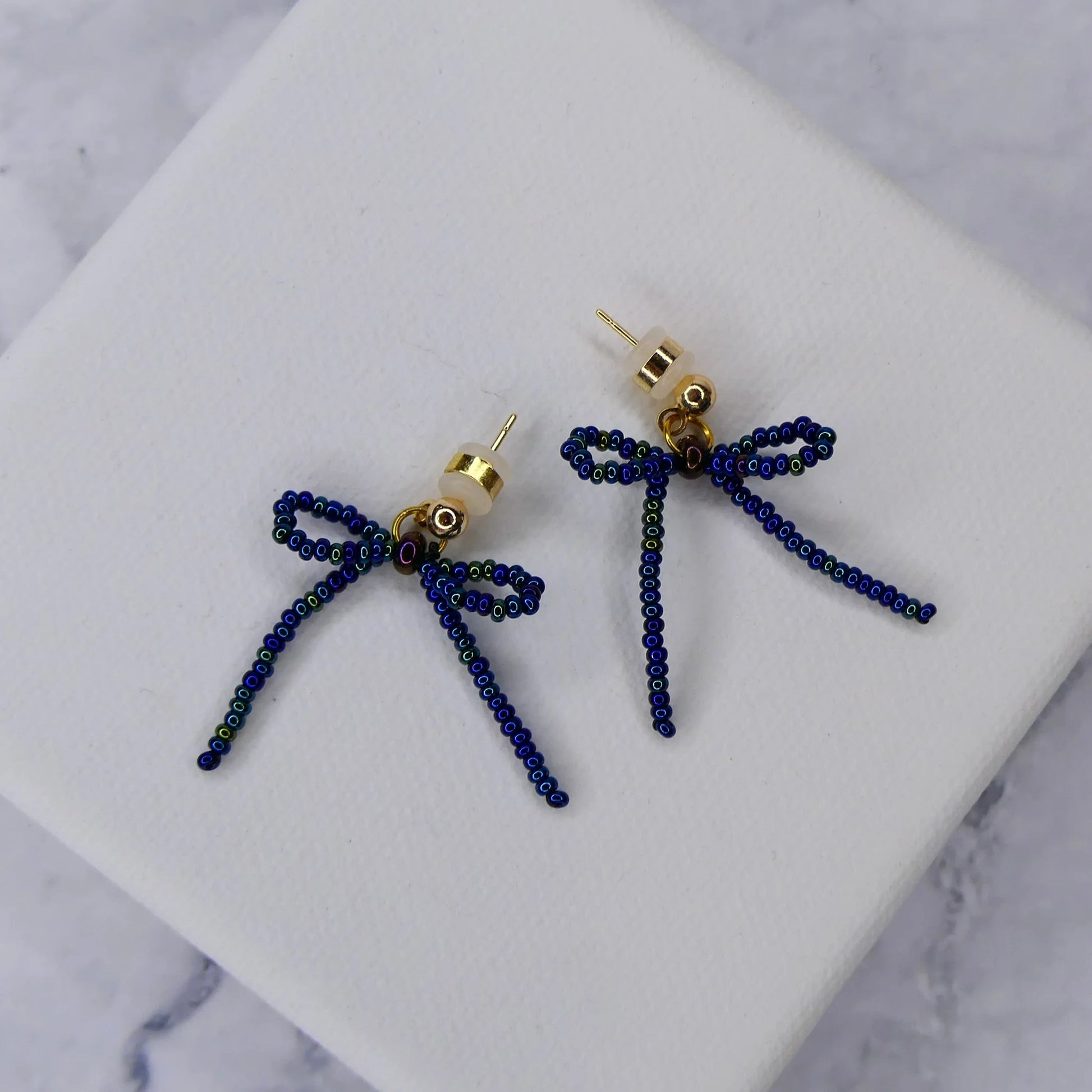 A pretty and feminine pair of earrings, perfect for adding a stylish touch. Measuring 35mm by 27mm, they’re finished with non-allergenic gold-plated studs and hand-beaded using premium Czech glass beads.